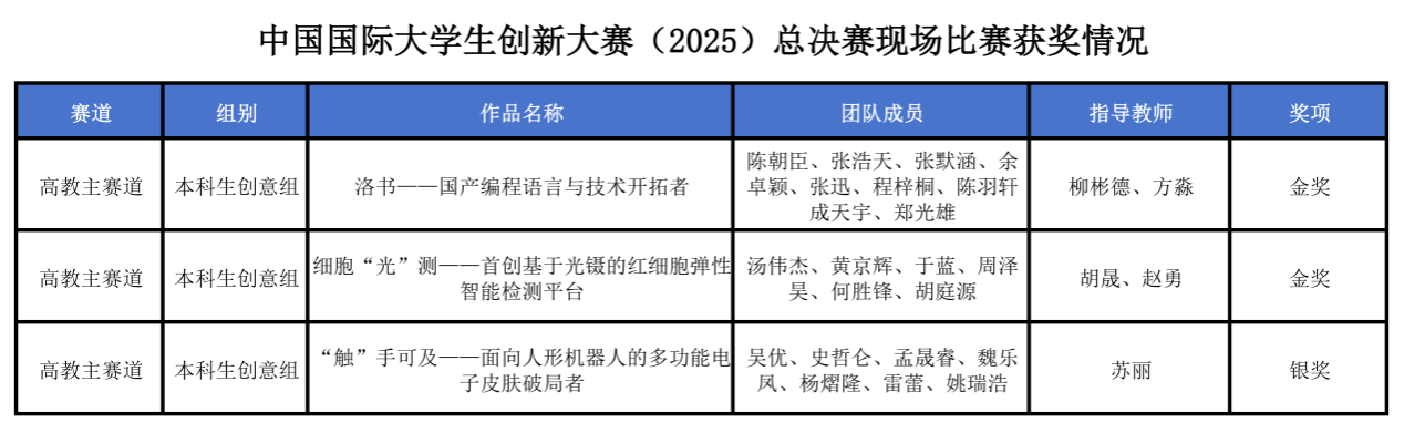 10月12日-15日,中国国际大学生创新大赛(2025)总决赛在郑州大学举行,经过激烈角逐,我校参赛项目斩获2金1银,实现金奖数量的新突破!