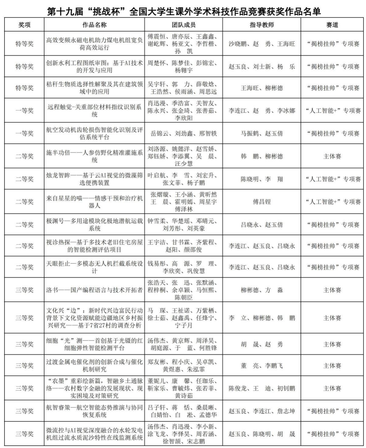 11月3日,第十九届“挑战杯”全国大学生课外学术科技作品竞赛终审决赛在南京大学落下帷幕。我校学生再创佳绩,在主体赛、“揭榜挂帅”专项赛、“人工智能+”专项赛中共获奖项18项,其中特等奖3项、一等奖2项、二等奖6项、三等奖7项,获奖层次及数量取得新突破。