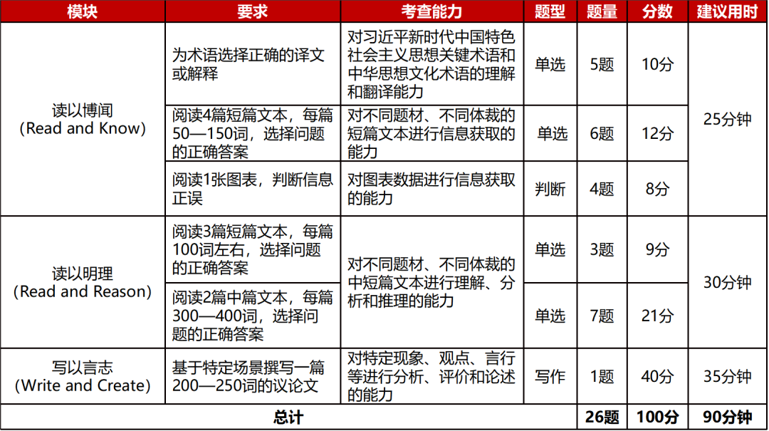 全国统一线上初赛赛题由大赛组委会提供,包括客观题若干道和议论文写作1篇,赛题构如下: