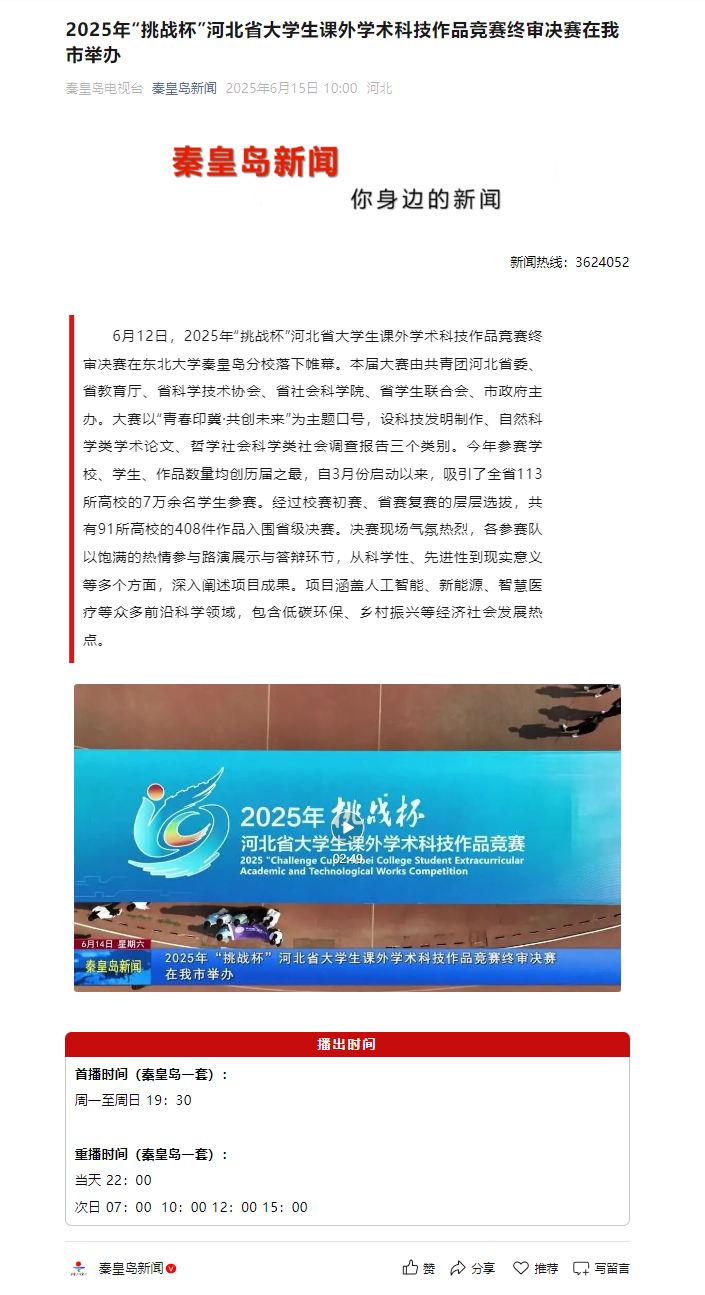 相关链接:2025年“挑战杯”河北省大学生课外学术科技作品竞赛终审决赛在我市举办 (qq.com)